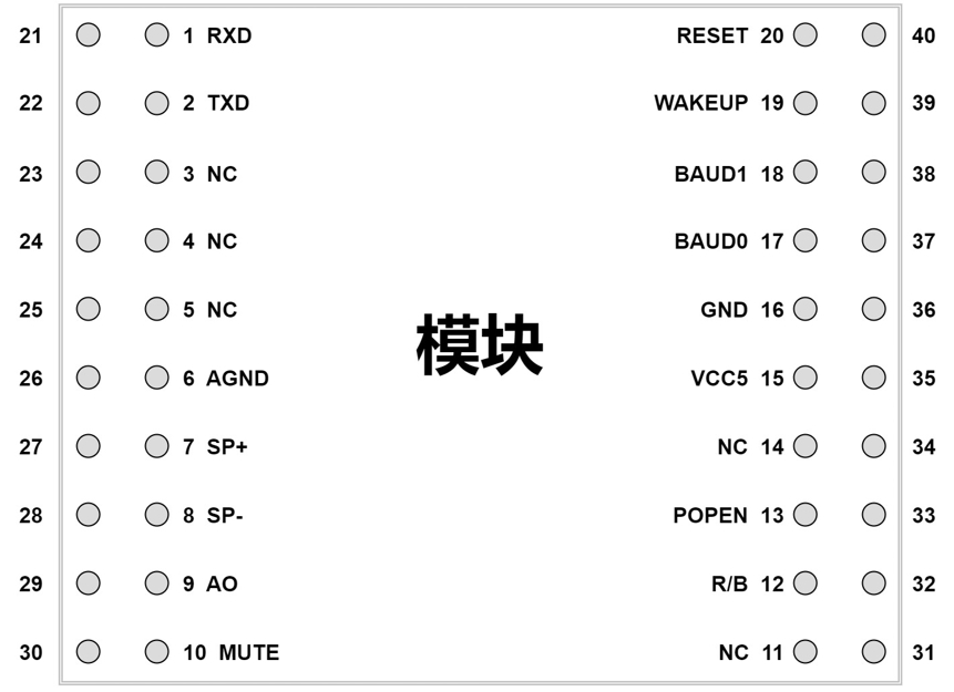 模块测试只需用到1 ~ 20管脚即可,21 ~ 40脚暂无用处
