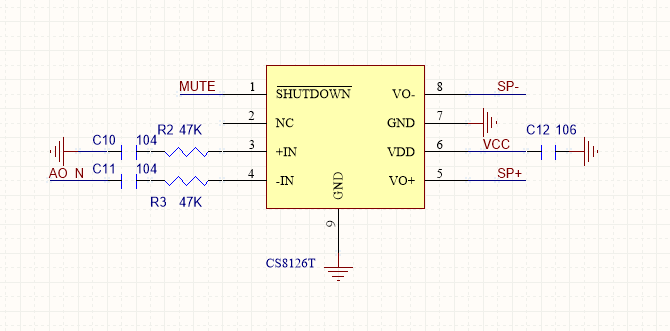 模块板载CS8126T功放芯片,详见《功放芯片推荐参考手册》