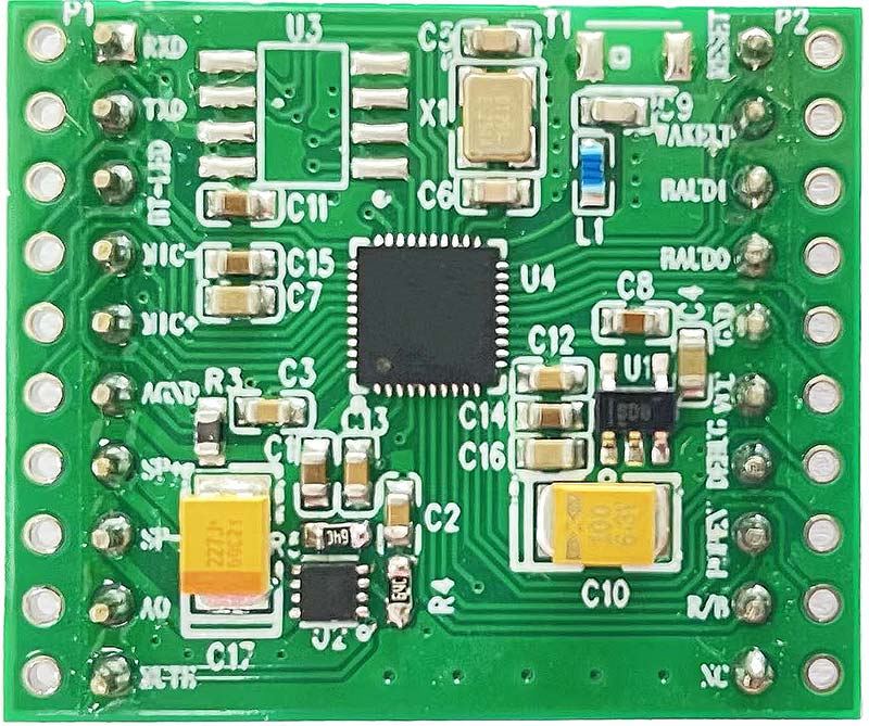 为方便客户评估测试语音合成芯片效果,我们制作成模块,客户只需要通过电源、UART、音频接口等几个简单的连线就能对语音合成芯片的性能做整体评估。
